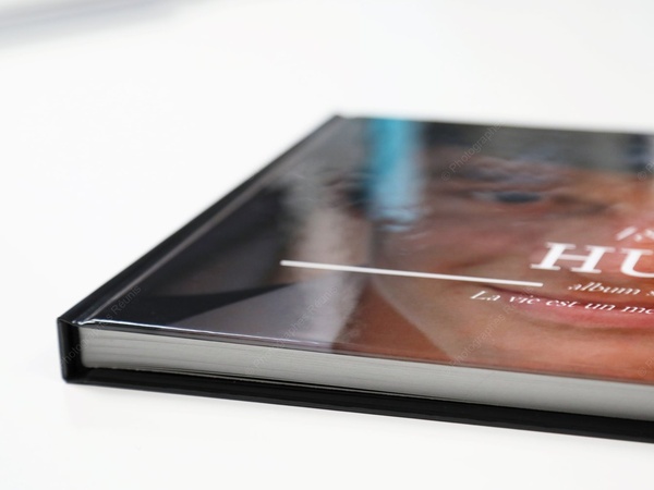 La gamme Hard Cover propose une couverture rigide personnalisable, tirée sur papier Fuji Album, pelliculée (film brillant) pour protection, puis contrecollée sur un carton 1400 g.