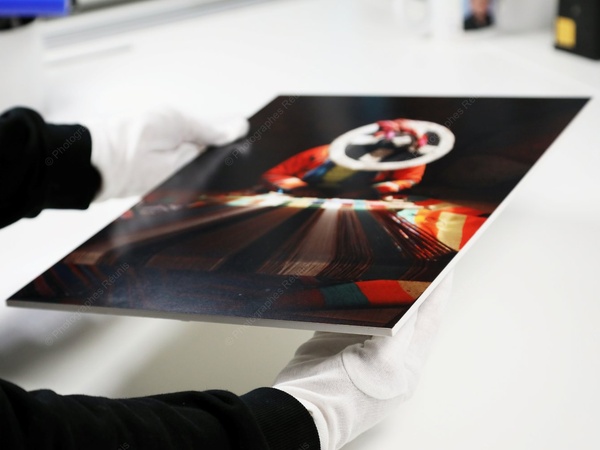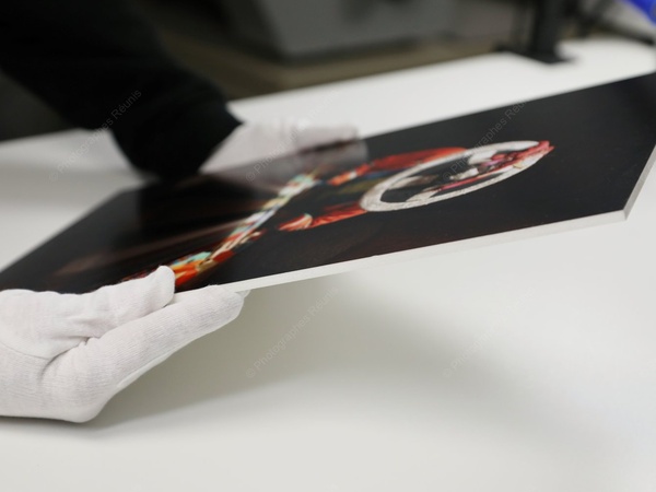 Le contrecollage consiste à coller le tirage photo manuellement sur une plaque rigide à l’aide d’un adhésif transparent double face. Cette technique assure une bonne tenue et une présentation soignée.