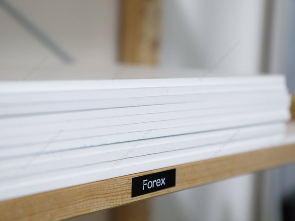 Le Forex est un matériau en PVC reconnu pour sa légèreté et sa polyvalence. Il se manipule et se transporte facilement, ce qui en fait un support particulièrement adapté aux accrochages temporaires ou régulièrement renouvelés. Une option de plastification brillante est proposée pour améliorer la résistance de surface et faciliter l’entretien.